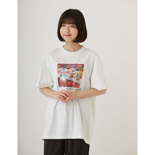 コウペンちゃん ダイナー Tシャツ メインビジュアル ホワイト