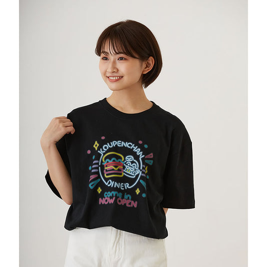 コウペンちゃん ダイナー Tシャツ ネオンサイン ハンバーガー ブラック