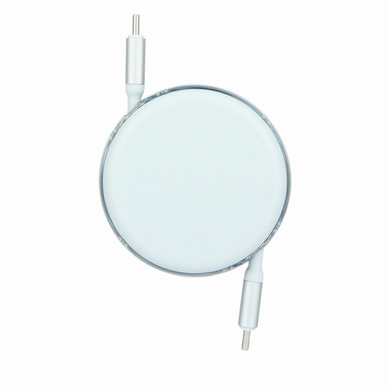 リール式でケーブルの絡みもなく、持ち運びに便利な同期&充電ケーブルです。